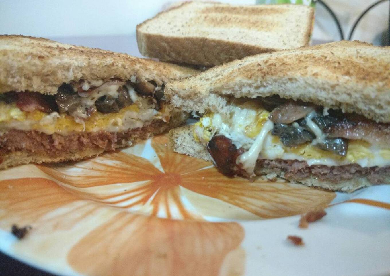 - Ahora si a armar el sándwich. Pan, mezcla, huevo y pan.