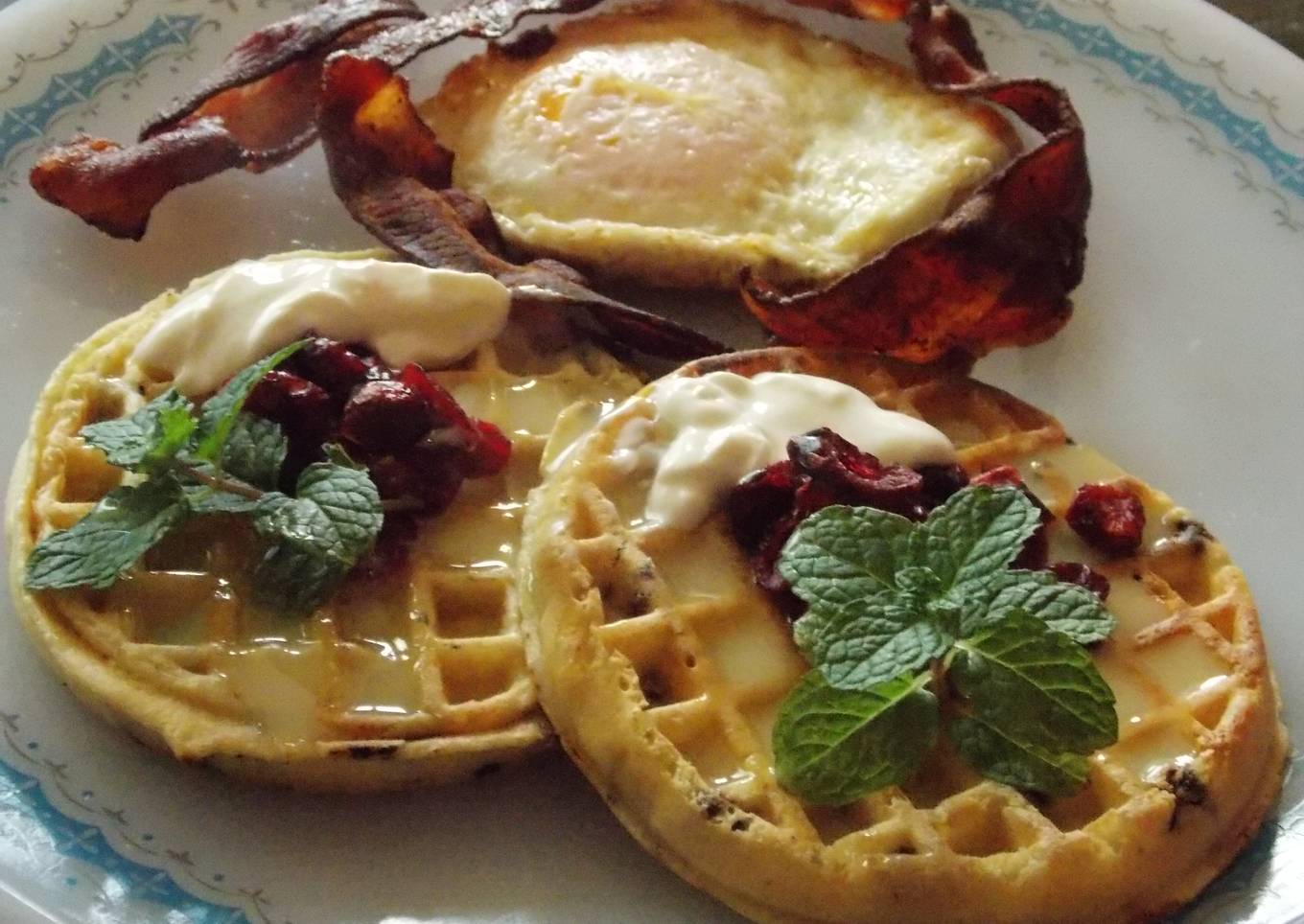 Estos waffles fue el desayuno que ayer 15 de Junio Día del Padre en México, mi hijo y mi nuera me llevaron a la cama, es el desayuno más delicioso que haya probado en mi vida.