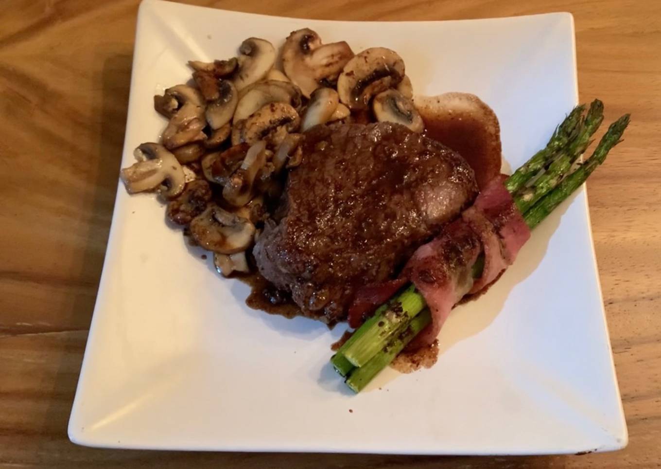 - Sirves en un plato el filete los champiñones y los espárragos y agregas un toque de nuestra salsa.