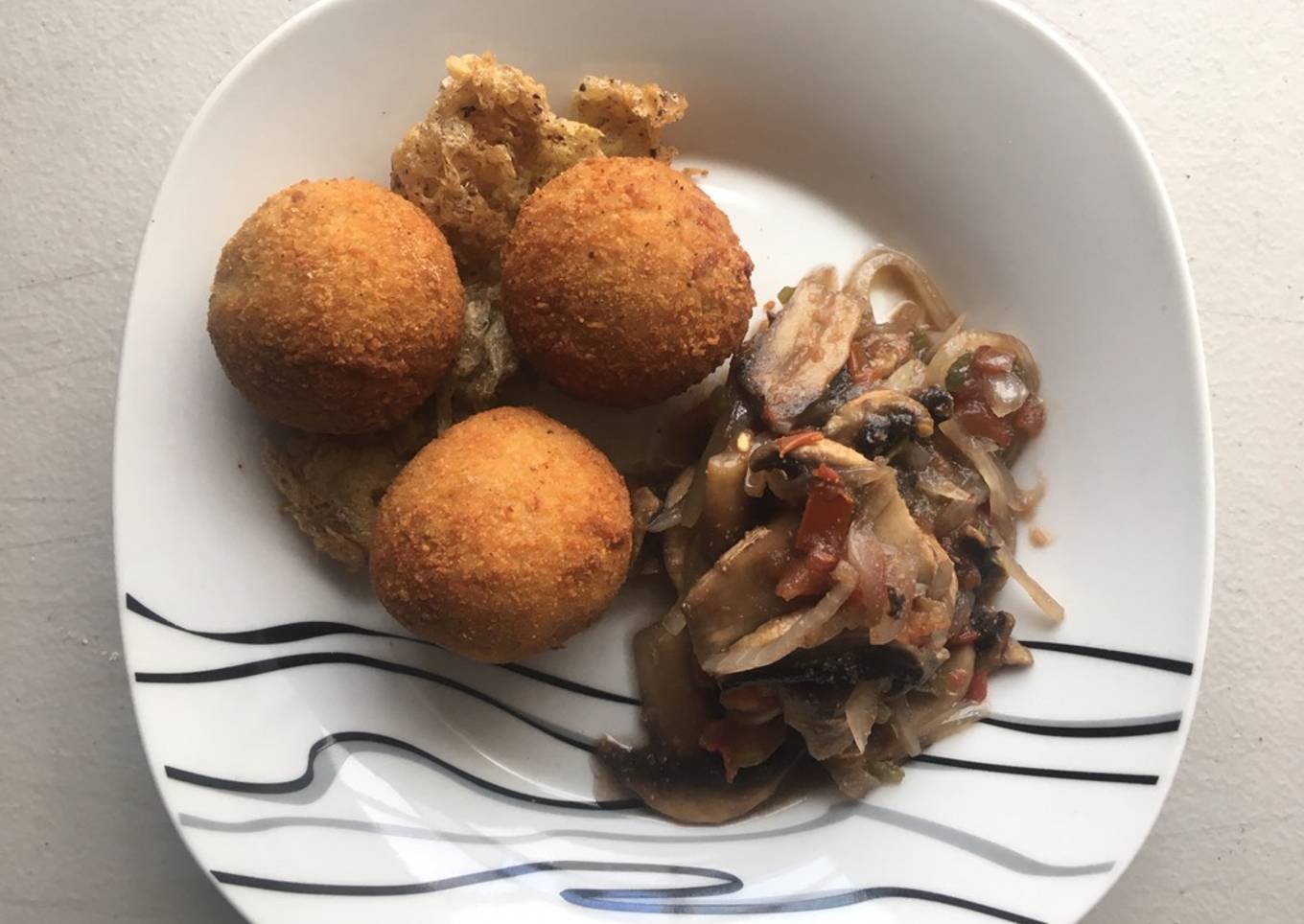 Bolitas de papá con atún y champiñones a la mexicana 😋