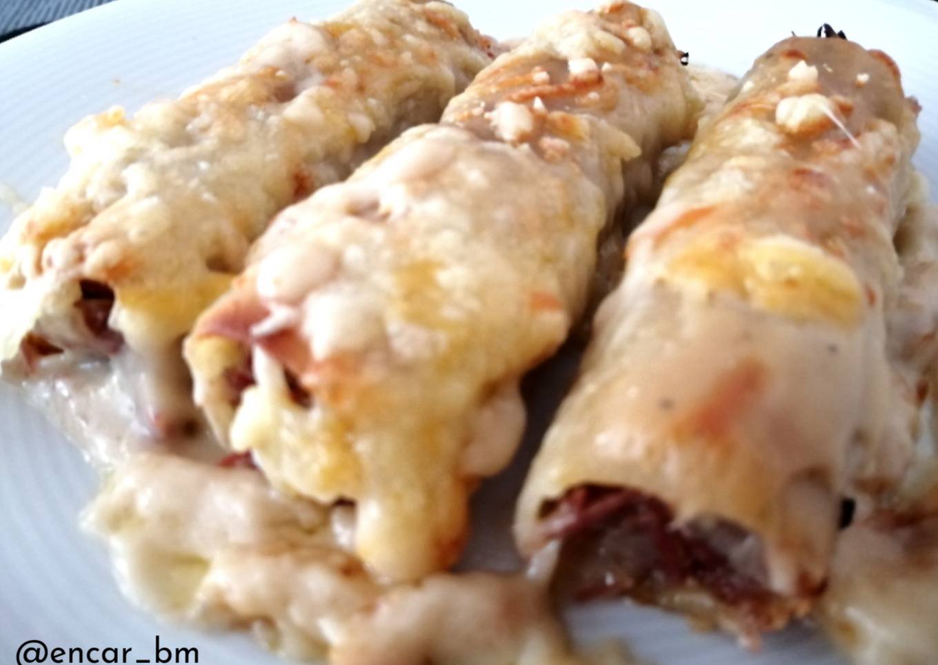So that's going to wrap it up for this exceptional food Simple Way to Prepare Speedy Canelones de pato y champiñón al Pedro Ximénez. Thanks so much for reading. I'm sure you will make this at home. There is gonna be interesting food in home recipes coming up. Remember to save this page on your browser, and share it to your loved ones, friends and colleague. Thanks again for reading. Go on get cooking!