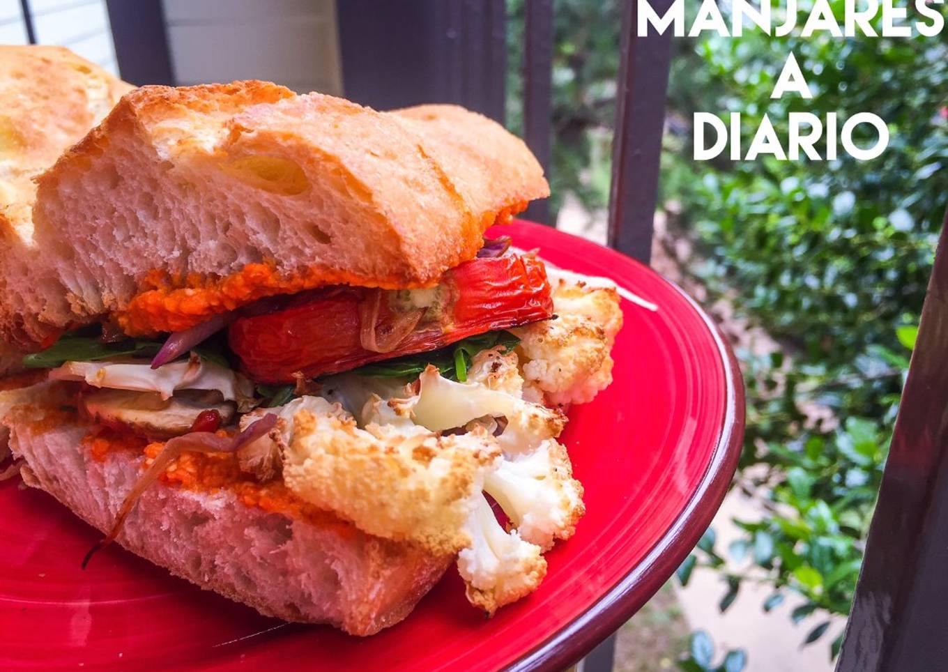 En este receta preparo un sándwich de coliflor con salsa romesco y varias verduras más, una delicia para el paladar y también para los sentidos!!