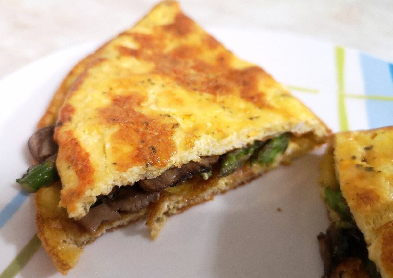 Tortilla rellena con espárragos y champiñones