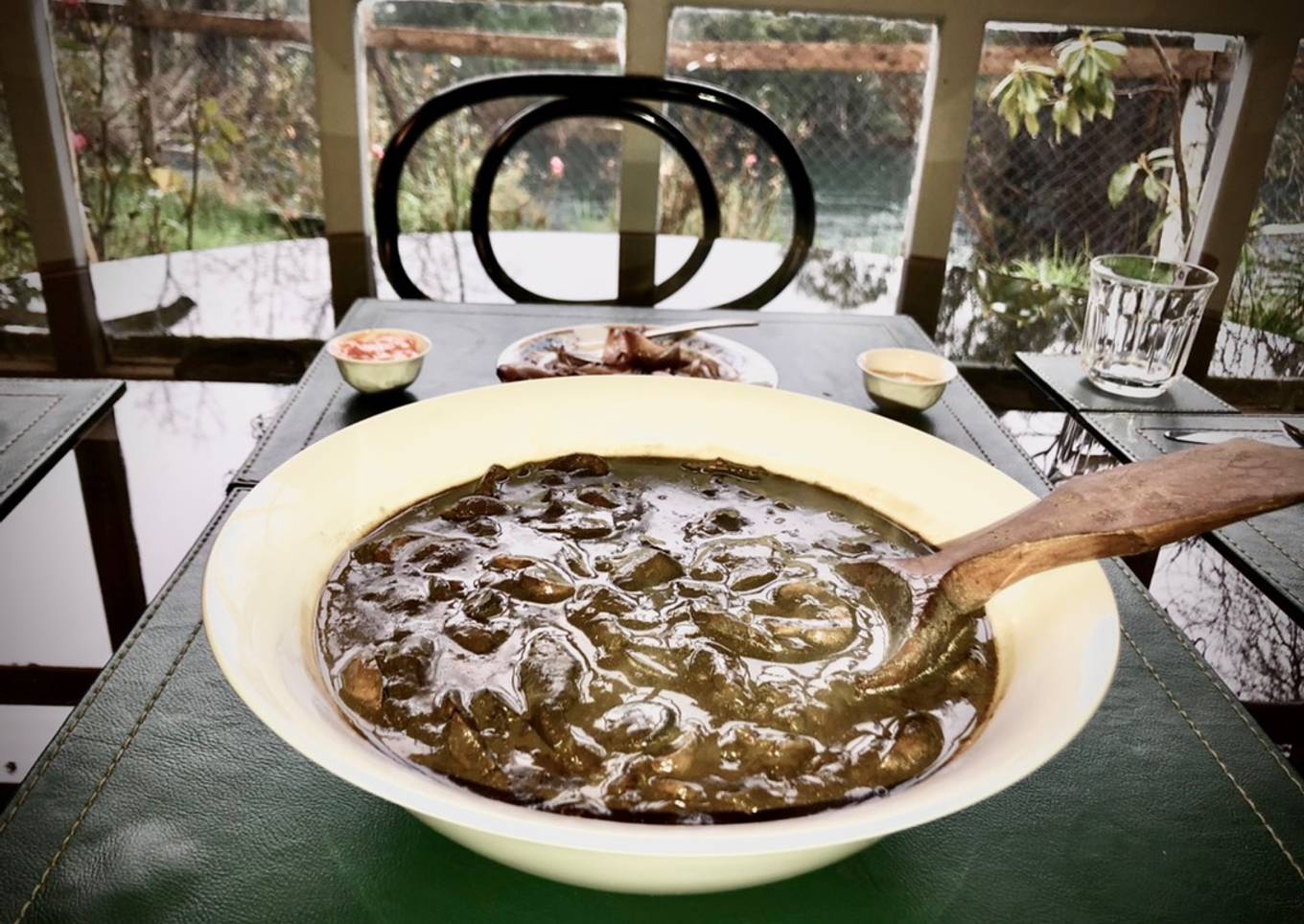 #Infancia Recuerdo de niña que ansiosa esperaba que llegara el otoño con sus primeras lluvias, me iba bajo el pino a revisar si había callampas, a veces había varias y mi nana, que era de campo, las preparaba de una forma muy simple pero de la que todos nos deleitábamos. Hacía una especie de salsa a la que a veces le agregaba callampas de las blancas (también de campo) o champiñones París si es que había. Esto lo usaba para complementar una carne al vino y creo que es de las exquiciteces que me recuerdan mi niñez, lástima que donde vivo es difícil conseguir estas callampas de pino. Estas las conseguimos en un paseo a orillas del río Toltén en Villarrica donde estoy de visita, son las últimas de la temporada, había muchas bajo unos pinos pero no todas estaban buenas. Son esponjosas y algo gelatinosas debido a que absorben el agua de lluvia y acá ha estado lloviendo intermitentemente estos días, como hubo sol entre medio, salieron las callampas que necesitan sol y humedad para desarrollarse. Las servimos con la carne al vino que preparó mi hija y la quinoa que preparó mi yerno, todo en familia… 😜. Una bomba proteica!