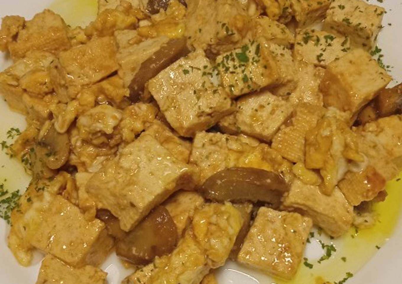Revuelto de tofu con champiñones y salsa de soja 😜😋