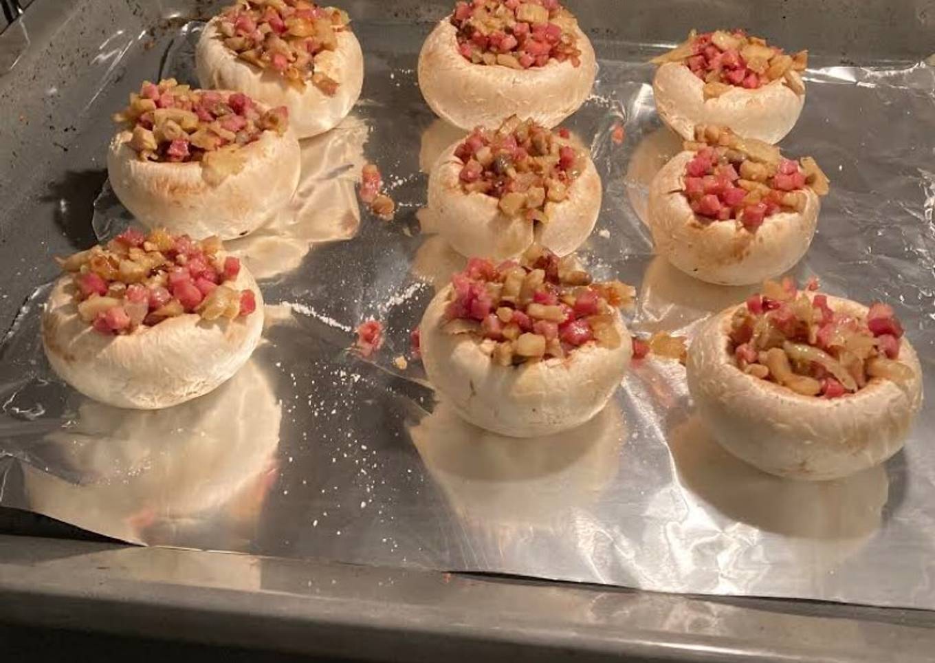 - Rellenar los champiñones con el sofrito y meter los champiñones rellenos en el horno