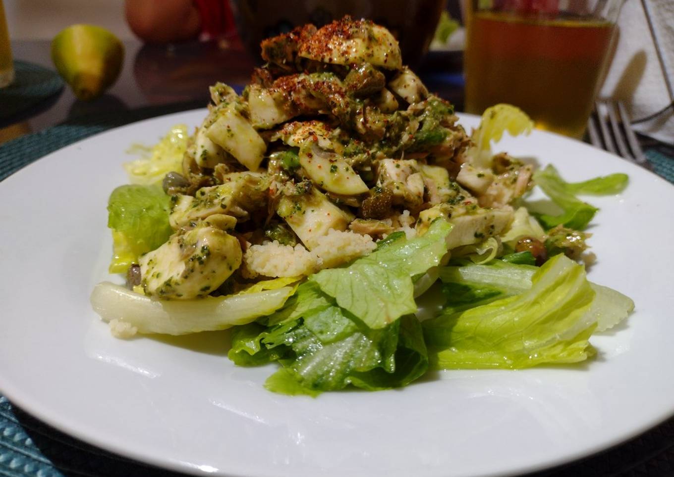 - Primero puse una capa de lechuga, una capa de cuscús (ya frío ❄️), luego sobre eso la mezcla maravillosa que resultó. Y listo el almuerzo, fresquito, tiene de todo, proteína, carbohidratos y grasas buenas. Que mejor 😁