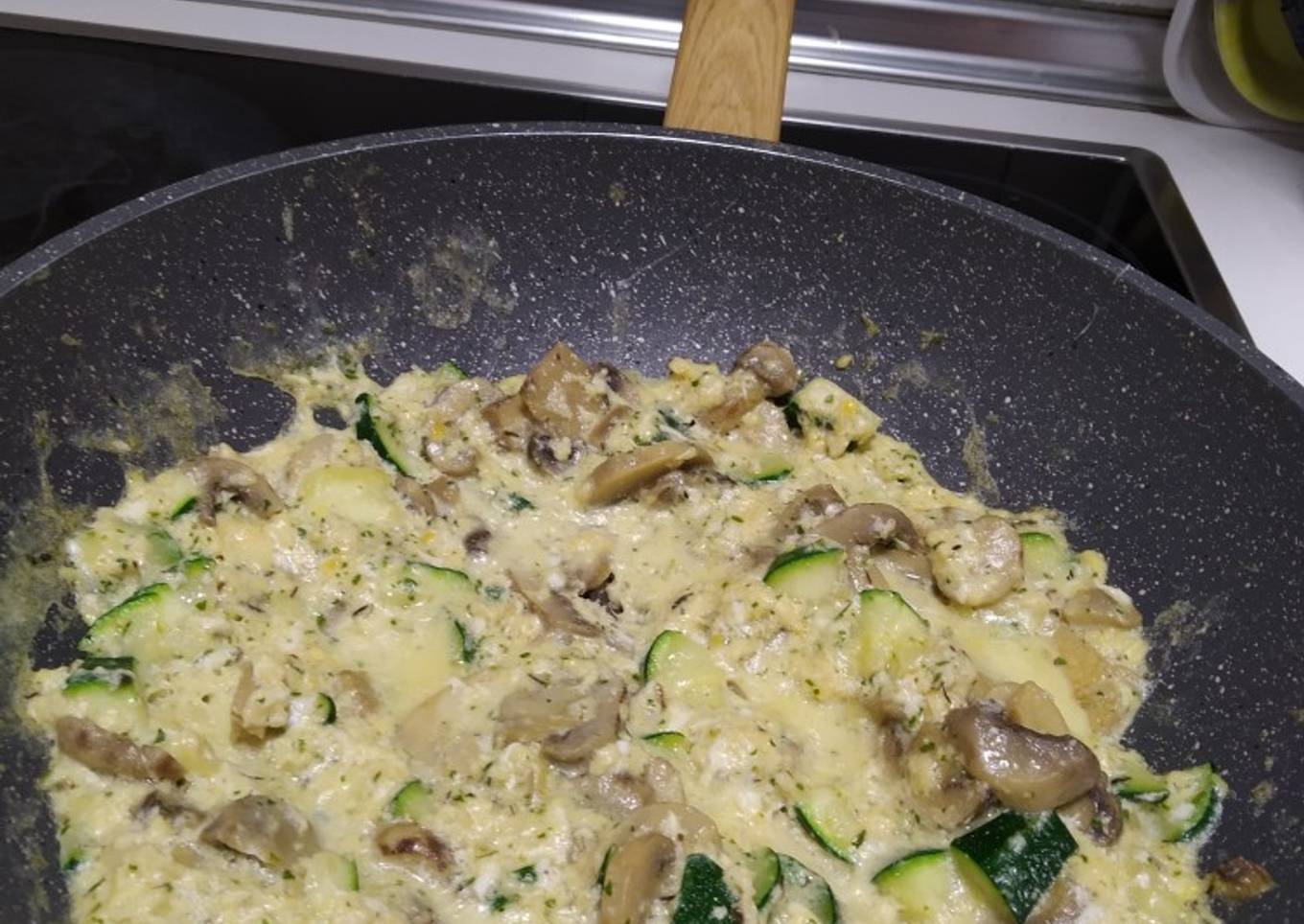 Just in addition, the time it takes to cook Revuelto de champiñones y calabacín con tomillo😋 estimated approx 10 minutos.