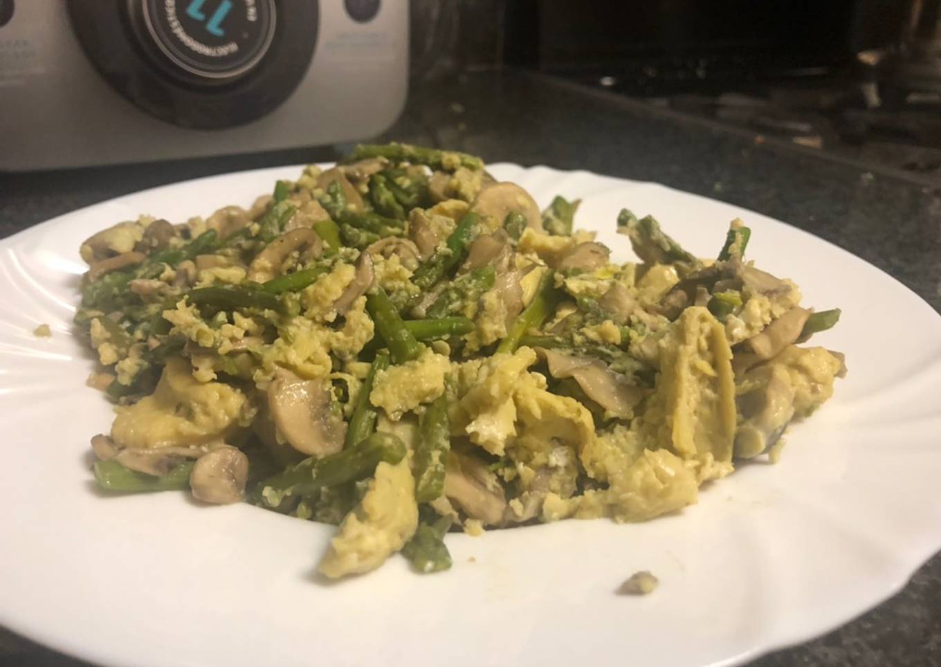 Revuelto de champiñones y espárragos (Mambo/Thermomix)