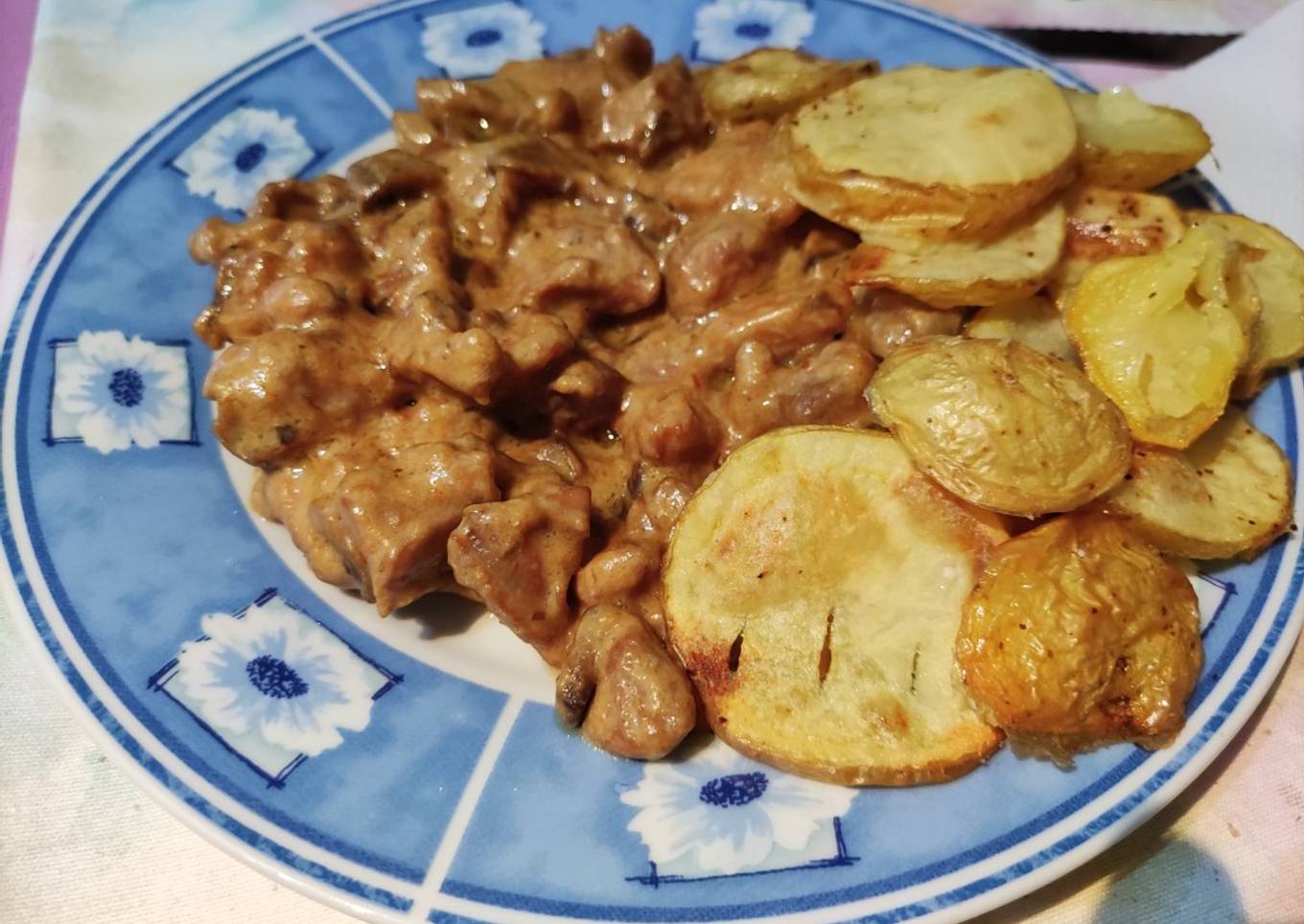 Pollo en salsa de nata y champiñones